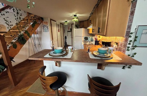 This special getaway is minutes away from Mexican town, Downtown Detroit and all major freeways, making it easy to plan your visit. You’re right in the center of it all! The loft comes equipped with pots and pans, an air mattress and easels for an art filled, fun night. All lights on the first floor are controlled by remote to change color and the mood of the space. There are also lights throughout the upstairs that can be turned on to illuminate the vines. We have created a guest guidebook that is conveniently located in the loft to help navigate the many wonders of Detroit. We hope that you enjoy your stay.