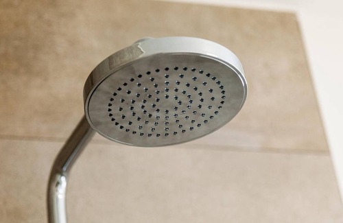 - Spacious bathroom with double wash basin, walk-in rain shower and heated towel rack.