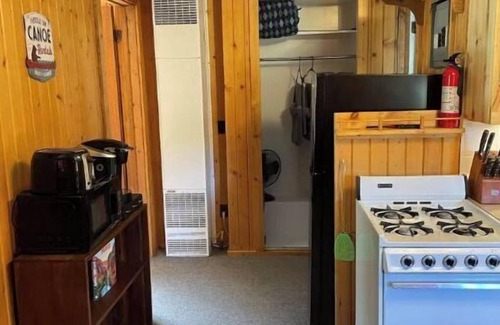 Our cozy 500 square foot cabin includes an enclosed porch with plenty of room for all your adventure gear.