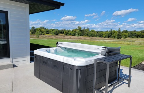 Tranquil, modern, and spacious home to host a large group during the US Senior Open at SentryWorld golf course. In-ground, heated pool with autocover, 7 person hot tub, 2 outdoor gas firepits, outdoor TV, indoor gas & wood burning stoves. 15 minutes from the golf course in a quiet neighborhood.