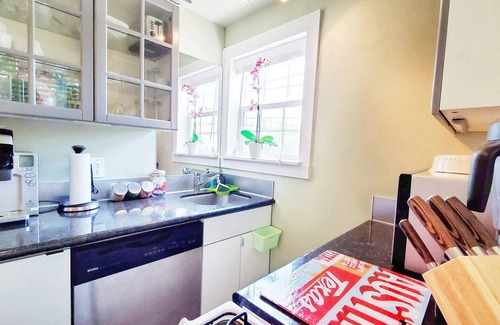 The kitchen includes coffee maker, four-burner gas cooktop/oven, refrigerator, toaster, microwave oven and dishwasher, enjoy appliances like Vitamix, Dyson, Cuisinart and Air Purifiers.