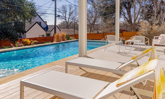 This stunning home, minutes from Downtown Austin, has just undergone a complete renovation and remodel inspired by the aesthetics of Palm Springs. With a sparkling pool and hot tub, a fire pit for those cooler nights, and an amazing Austin location, you'll never want to check out of this luxurious getaway!