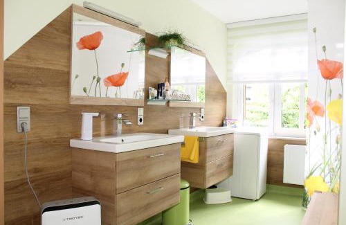 4.8 miles from Zittau Goerlitz University of Applied Sciences in Oybin, Ute`s Feriendomizil features accommodations with access to a public bath. This property offers access to a terrace, free private parking, and free Wifi. The homestay offers garden views and a picnic area. All units come with a seating area, a flat-screen TV with satellite channels, and a private bathroom with a hair dryer and walk-in shower. Rooms come with a coffee machine, while some rooms also feature a fully equipped kitchen with a dishwasher and an oven. At the homestay, units come with bed linen and towels. Guests can make the most of the warm weather with the property's barbecue facilities. Skiing, cycling, and hiking are possible within the area, and the homestay offers ski storage space. Ještěd is 23 miles from Ute`s Feriendomizil, while Zoo Goerlitz is 25 miles from the property. Dresden Airport is 75 miles away.