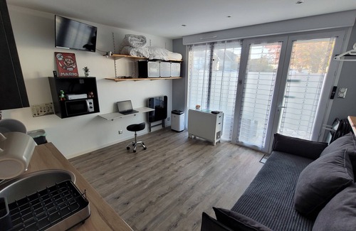 Utopia T2 32 M² fully equipped is located in Lanester. Utopia T2 32 M² fully equipped provides accommodation, featuring Bedding/Linens, Guest Services, Barbecue/Outdoor Cooking, among other amenities. This Apartment features Bedding/Linens, Guest Services, Barbecue/Outdoor Cooking, to make your stay a comfortable one.