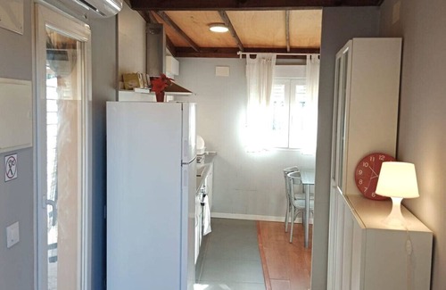 Fully equipped kitchen (ceramic hob, microwave, washing machine, refrigerator, complete kitchenware)