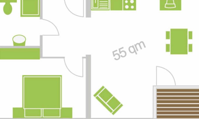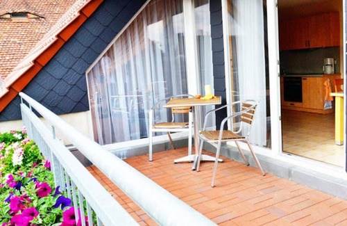 In this spacious holiday residence you can enjoy your stay with the whole family. Relax on the balcony and look forward to a lot of nice details that make your stay as comfortable as possible with us. This 55sqm apartment has a living room with kitchen and dining and living areas. Guests will also find a bathroom and a bedroom and a balcony. Maximum occupancy: 4 persons. Apartment facilities: Seating Area, Heating, Internet, hairdryer, TV, telephone, fax, radio, DVD player, CD player, coffee / tea maker, refrigerator, kitchen, bathroom with shower and toilet, linen and towels, Balcony, Non smoking room / - FerienwohnungEin cot is an integral part of the flat. On request we gladly further baby equipment available, there is the possibility to wash laundry on site. Pets are not allowed in this apartment.