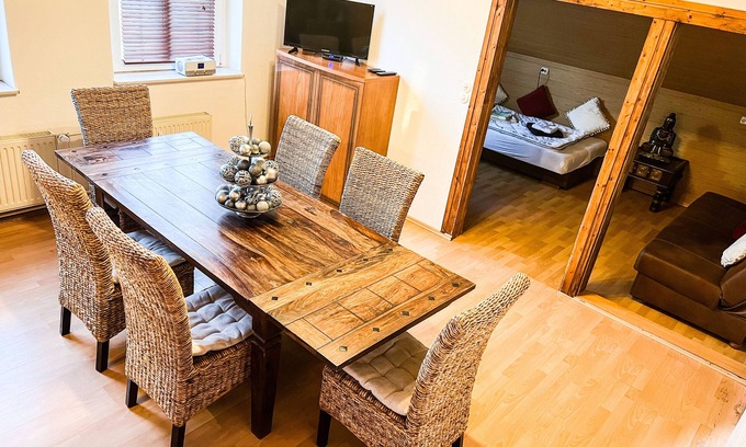 Best-rates for the Falkensee apartment starts from $268 per night with includes Sports/Activities, Guest Services, Laundry, Security/Safety, Entertainment, TV, Bedding/Linens, Wellness Facilities, Fireplace/Heating, Internet, Kitchen, Balcony/Terrace, Barbecue/Outdoor Cooking, Child Friendly, Parking with all other amenities. Perfect for Weddings is committed to ensuring every guest experiences a comfortable and extraordinary stay, whether planning a romantic getaway, a honeymoon, a pet-friendly stay, or celebrating with the entire wedding party.