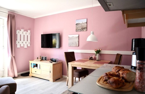 - Newly furnished vacation apartment in direct tidal flat location with balcony and sea view.
