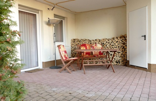Of the 24sqm large and fenced terrace are 16sqm left. You can enter them directly from the dining area and sit out in the open, sheltered and enjoy the fresh air.
