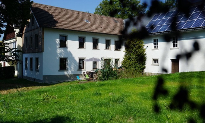 Vacation apartment in a farmhouse in the Fichtelgebirge is located in Gefrees. Vacation apartment in a farmhouse in the Fichtelgebirge provides accommodation, featuring Air Conditioner, Designated Smoking Area, Balcony/Terrace, among other amenities. This Apartment features Air Conditioner, Designated Smoking Area, Balcony/Terrace, to make your stay a comfortable one.