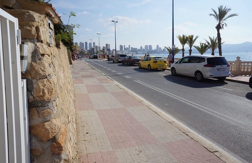The rental apartment is 162 m² in size and has 3 bathrooms, a complete kitchen, a large glassed terrace, a sitting room, satellite TV, a washing machine and valuable furniture. Bedding is included and is new. All appliances are available. The apartment was renovated in 2002 and has marble-heating and telephone. All the bathrooms were renovated in Nov. 02. We have a single garage for your car for rent. This apartment is directly at the beach (only 10 m). From our terrace, you have a beautiful view of the beach, the sea and Benidorm. The bus station to Benidorm is 50 m away. Here it is very quiet. Nearby you find the Carrefour shopping center with food and all other things. As it is 3 km distant, it is better to have a car. You can hire a car for a few days for shopping. You really have to visit Terra Mitica Park, it is also 3 km from Casa Blanca. There are many interesting things for your children. Please arrange a whole day for this visit and make a one-day trip in the mountains.