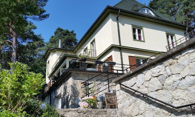 You can relax comfortably on a beautiful garden plot in a hillside and forest location.
