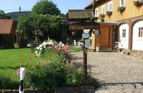 Experience the best days of the year in the original Oberlausitzer Umgebindehaus. Our house is located in the resort of Waltersdorf, quietly located in a rural idyll in the middle of the Zittauer Gebirge Nature Park. In 2 lovingly furnished apartments you need modern comfort and feel-good atmosphere in the country style not to renounce - they were awarded by the German Tourism Association. Our guests have a breakfast and common room available. The apartments are located on the first floor, are 36 square meters for 2 people and 47 square meters for 4 people (2 bedrooms). An extra bed for the baby or child is not a problem. A newly renovated bathroom shines with real glass shower (level entry), towel dryer, hair dryer and make-up mirror. Towels, bath towels and bathrobes are included in the price. The entrance of our house is the typical front lodge in the basement and an adjacent hallway with stairs to your self-contained apartment. WLAN connection is available throughout the house. A large garden (1800 sqm) invites you to play and relax. A barbecue area is available, for the children there is a swing, sandpit and painting board. Bicycles and sledges can be borrowed. A car parking space is available on the property, on request, a garage can be booked (3.00 € / day). There are many possibilities for an individual holiday in the Zittauer Gebirge Nature Park. Walks on foot, by bike or ski in Germany's smallest low mountain range start right on the doorstep. Our special service for you: in the morning fresh rolls at the door, beverage service in the house, homemade jams and eggs from happy chickens, we keep ready for you. Your well deserved vacation with us - Welcome to your holiday home!