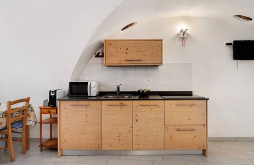 On the ground floor there is a reading and TV room, extra flats, with the library created by the economic stove: an open space for reading and information (TV, maps and QrCode). The stove is in the same location and original room: Uncle Fiore's kitchen that lived in the family home until 2006. The structure is characterised by "barrel vaults" on both floors, with thick walls, accessories and wooden furniture with a mix of antique and modern. The loggia on the first floor is accessible by a panoramic, open-air lift, respecting the structure where the old staircase used to be. The rooms dedicated to "Agnese" and "Paolo" have been made "mirror-like", maintaining historical and cosy spaces, with a double bedroom, a bathroom with a comfortable and usable shower, the possibility of a double sofa bed, a kitchenette equipped with dishwasher and induction cooker. Comfortable and romantic house, also suitable for families with children (cot and high chair on request) for ease of access, wide doors and comfortable rooms.