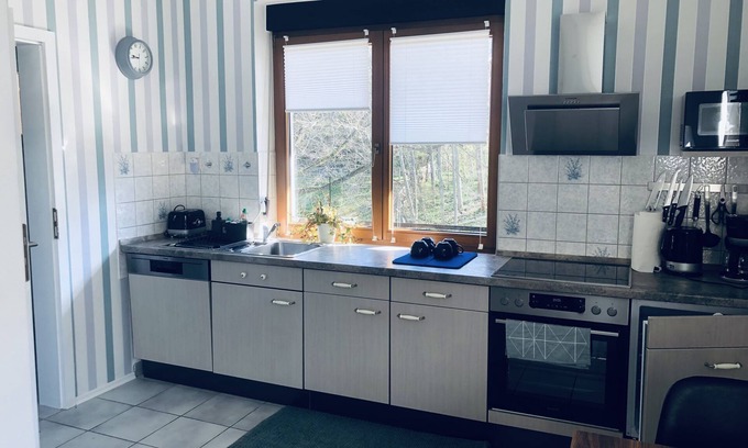 Close to cycling, hiking trails, and more, this smoke-free apartment brings it all within reach. Jump into your car and make short work of the 4-minute drive to Rochsburg Castle or the 3-minute drive to Heinrich-Heine-Park (and enjoy the property's convenient onsite parking in the meantime).
