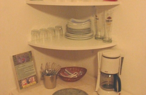 Casa Olivo has an arched entrance and a mill wheel that once belonged to an olive press. It also has a basement where you can store different things. The staircase leads you to the bright upper floor (all the rooms have windows), where you can find the bedroom with double bed and satellite TV set, Internet wi-fi. Together with the living room which has two single beds, this can be a good dwelling for a family of four. The bathroom has a bathtub with sprinkler, washbasin, bidet and water closet. From the kitchen you can go out on the terrace, which has a dining table, an umbrella and two couches. From there, you can enjoy the outlook of the sea and the wonderful view upon the medieval Castello. It has a quiet location, far from the street traffic. There is a common barbeque on a green spot,