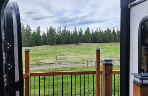 Vacation Camper with private area behind with Seating, Firepit, and Hot tub | House in Lakeside