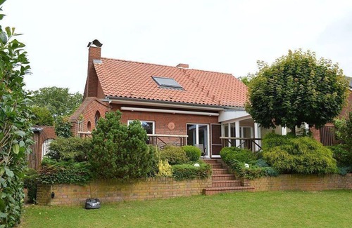 The beautiful comfortable holiday home is located on the Flensburg Fjord in the district of Wees, in a single-family housing estate. The distance to the beach in Glücksburg Sandwig is about 3 km and can be reached by car in 5 minutes. Here you will find the ideal mix of relaxation, beach holiday, sports activities, excursions and culture. The high quality furnished holiday home "Fjale" is situated on a sunny and not visible property and has 3 bedrooms, 2 bathrooms with shower or bathtub / WC, a spacious living room with conservatory, dining room with modern open kitchen, glass fireplace and underfloor heating, a separate dressing room and a Bath are on the ground floor. The three bright bedrooms and another bathroom are upstairs. In the basement there is a storage room with dryer and washing machine and a room with a fitness machine.