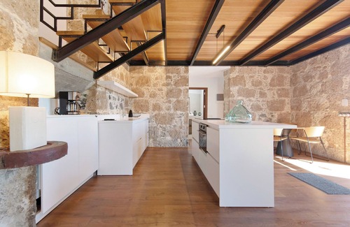 the machinery that extracted the water from the well of the farm was located inside. Now it has become a loft of two heights with capacity for 4 people, has a living room-kitchen, two bedrooms and two bathrooms, garden with swimming pool and private barbecue, plus free parking. Enjoy this wonderful quiet and central accommodation.