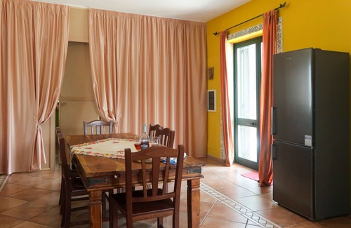 4-room house 110 m2. Practical and rustic furnishings: living/dining room with dining table, TV, air conditioning and forced-air heating. Exit to the garden. 1 room with 1 french bed (160 cm). 1 room with 2 beds and open-hearth fireplace. 1 double bedroom with shower/WC, air conditioning and forced-air heating. Open kitchen (oven, 5 gas rings, toaster, freezer, pizza oven). Shower/WC. Terrace. Terrace furniture, barbecue, deck chairs (6). Facilities: washing machine, baby cot. Internet (WiFi, free). Please note: one double bedroom is outside the apartment. Maximum 1 small pet/ dog allowed. IT075041C200042683