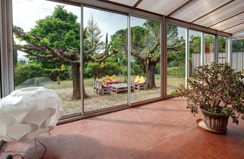 New Traditional Swimming Pool with deckchairs and large parasol in a large flowered and shaded garden (2,200 m2). Equipped kitchen (traditional oven, microwave, dishwasher, washing machine, dryer, programmable coffee maker, toaster, kettle, mixer). Ironing set, Hair dryer. Barbecue under the veranda which opens fully and which is equipped with a table, an electric blind and a ceiling fan. 2 bedrooms with a 140 X 200 bed with cupboards. Convertible sofa in the sleeping area of the Living Room + Convertible corner living room as well. Dining room. 2 bathrooms (1 with shower the other with bath, hairdryer). Separate toilet. Garden furniture under the mulberry trees. Garage. Parking in the fully enclosed garden. Petanque. Ping pong table. Nice and large south facing garden, full of flowers and surrounded by greenery. FREE Large WIFI Parasol. Ironing kit.