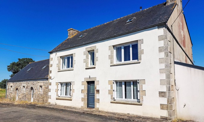 Large, cosy single-family house "Kerdro". In the hamlet Kerdro 2.3 km from the centre of Plouégat-Moysan, 12 km from the centre of Plestin-les-Grèves, 1.5 km from the sea, 1.5 km from the beach. Private: property 500 m2 with wildlife garden and trees, parking (for 3 cars) on the premises. Shop 7 km, grocery 2.3 km, supermarket 12 km, shopping centre 18 km, restaurant 2 km, bakery 7.3 km, internet café 2.3 km, bus stop 3 km, sandy beach "Locquirec ou Plestin-les-Grèves" 15 km, indoor swimming pool 7 km. Sports harbour 17 km, golf course (18 hole) 40 km, surf school 17 km, sailing school 17 km. Nearby attractions: Morlaix 20 km, Lannion 30 km, Ploumanac'h, Côte du Granit Rose 42 km, Plougasnou 28 km, Roscoff, Jardin exotique, Île de Batz 48 km, Huelgoat 35 km.