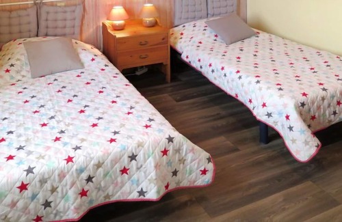 "La Ferme (OIA100)", 6-room house 120 m2 on 2 levels. Rustic and tasteful furnishings: living/dining room with open-hearth fireplace (only for decoration), dining table, satellite TV, radio and CD-player. Exit to the terrace. Lounge with TV (flat screen). 3 rooms, each room with 1 french bed (140 cm, length 190 cm). 1 room with 2 beds (90 cm, length 190 cm). Small, open kitchen (oven, dishwasher, 3 ceramic glass hob hotplates, toaster, kettle, microwave, freezer, electric coffee machine, Capsules for coffee machine (Senseo) extra). Bathroom, sep. WC. Oil heating. Small terrace. Terrace furniture, barbecue (portable), deck chairs (4), box-room. Beautiful view of the countryside. Facilities: washing machine, iron, children's high chair, baby cot (extra). Internet (WiFi, extra). Please note: non-smoking house. Maximum 2 pets/ dogs allowed. Smoke alarm.