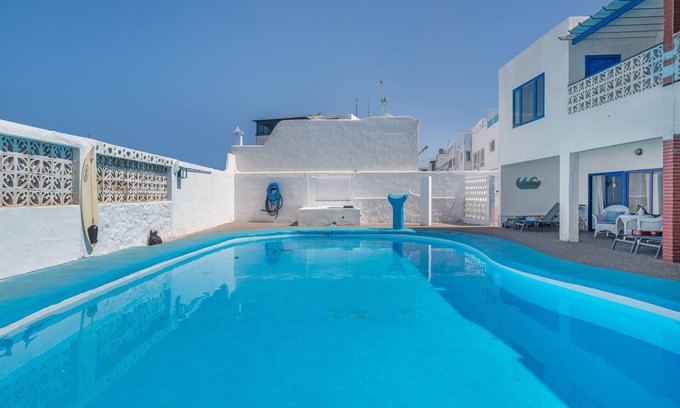 The holiday home La Santa Surf House, which is situated in La Santa, overlooks the Atlantic. The 2-storey property consists of a living room, a kitchen, 3 bedrooms and 2 bathrooms and can therefore accommodate 6 people. Additional amenities include high-speed Wi-Fi (suitable for video calls) with a dedicated workspace for home office, a smart TV with streaming services, a washing machine as well as beach/pool towels. This accommodation does not offer: air conditioning. This vacation rental features a private outdoor area with an open terrace, covered terrace, balcony, and barbecue facilities.