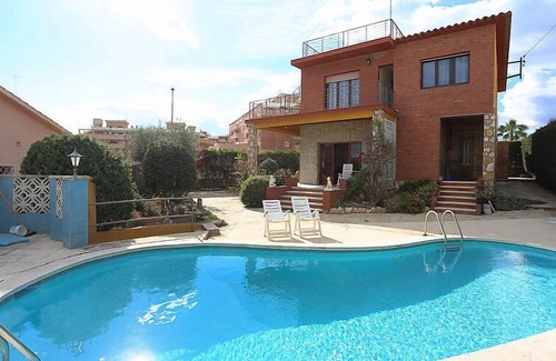 Torredembarra 19 km from Tarragona: House "Lleida", 2 storeys, detached. In the centre of Torredembarra, 850 m from the sea, from the beach. Private: natural state property (fenced), garden, swimming pool kidney shaped (seasonal availability: 01.Jan. - 31.Dec.). Barbecue. Shop 100 m, grocery 200 m, supermarket 200 m, shopping centre 20 km, restaurant 150 m, bar 150 m, bakery 350 m, café, pedestrian zone 300 m, 3 minute walk to the centre, bus stop 300 m, railway station "Renfe Torredembarra" 500 m. Sports harbour 1.4 km, tennis 1 km. Nearby attractions: Port Aventura 30 km, Aquopolis 35 km, Jungle Trek 9 km. Well-known lakes can easily be reached: Pantano de Foix 33 km, Embalse de Siurana 60 km. Hiking paths: La Musara 56 km. The owner does not accept any groups. The owner does not accept any youth groups. Neighbourhood highly sensitive to noise. Quietness and good behaviour expected.