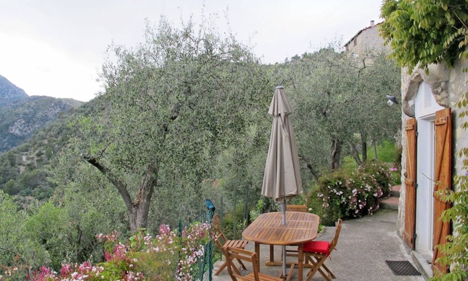 Rustic farmhouse "Miche", detached, surrounded by trees and vineyards. In the resort Collabassa, 4.2 km from the centre of Airole, 15.4 km from the centre of Ventimiglia, on a slope, 17 km from the sea. Private: natural state property 1'100 m2 (fenced) with trees. Patio. 80 m stepped path (5 steps) to the house. Public parking 100 m on the road. Shop 4.2 km, restaurant 3.5 km, bus stop "Airole" 3.9 km, railway station "Airole" 3.5 km, sandy beach "Le Calandre" 16.6 km, rocky beach "Balzi Rossi" 22.8 km.