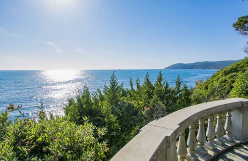 2-family house "Nella", 3 storeys, semi-detached. 4 km from the centre of Castiglioncello, 3 km from the centre of Quercianella, 15 km from the centre of Livorno, on a slope, residential area (villas), 40 m from the sea. For shared use: property 2'000 m2, park with plants and trees, natural garden. Private: outdoor shower, terrace (10 m2). 20 m footpath to the house. Parking on the premises. Shop 3 km, supermarket 4.5 km, bus stop 100 m, railway station "Castiglioncello" 5.5 km, sandy beach 2 km, rocky beach 40 m, outdoor swimming pool 2.5 km, concrete beach 40 m. Nearby attractions: Pisa 40 km, Lucca 65 km, Firenze 100 km. Please note: the owner lives on the same property.