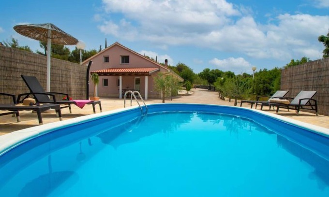 Dubrava: Beautiful single-family house "Nina". 8 km from the centre of Šibenik, in a sunny position, 8 km from the sea. Private: property 1'100 m2 (fenced), swimming pool (26 m2, depth 150 cm, seasonal availability: 01.Jun. - 01.Oct.). Outdoor shower, pool house with shower and WC, barbecue. In the house: internet access, washing machine. Parking (for 3 cars) at the house on the premises. Shop 2 km, restaurant 8 km, bus stop 190 m, pebble beach 10 km. Nearby attractions: NP Krka 12 km. Please note: suitable for families. Groups of teenagers on request only. Airfield 45 km from the property.