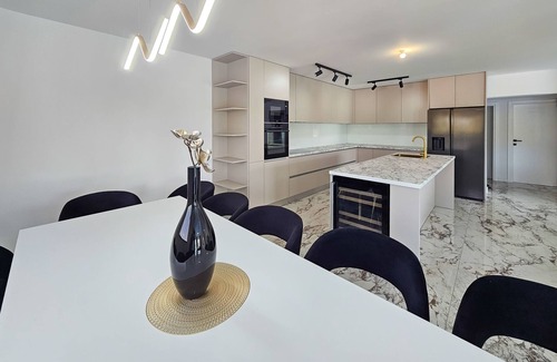 7-room villa 220 m2 on 2 levels. Beautiful and stylish furnishings: living/dining room 70 m2 with satellite TV (flat screen), air conditioning. Exit to the terrace. 1 room with 1 french bed (160 cm, length 200 cm), shower/WC. Exit to the balcony. 1 room with 2 beds (80 cm, length 200 cm), shower/WC. Exit to the balcony. Open kitchen (oven, dishwasher, 4 ceramic glass hob hotplates, microwave, freezer, electric coffee machine). Sep. WC. Upper floor: 2 rooms, each room with 1 french bed (180 cm, length 200 cm), shower/WC. 1 room with 1 french bed (180 cm, length 200 cm), bath/WC. Exit to the balcony. 1 room with 2 beds (80 cm, length 200 cm), 1 french bed (180 cm, length 200 cm), bath/shower/WC. Exit to the balcony. 2 balconies 4 m2, balcony 5 m2, terrace 10 m2. Terrace furniture, deck chairs (8). Beautiful view of the swimming pool and the countryside. Facilities: washing machine, children's high chair, baby cot, hair dryer. Internet (WiFi, free). Please note: non-smoking house. UP/I-335-02/24-0201/102