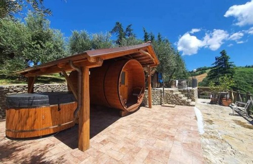 The vacation home "Re Piano I Fiori" is located in Modigliana and is a great choice for an unforgettable stay with your loved ones. The 90 m² property consists of a living room with a sofa bed for 2 people, a kitchen, 1 bedroom, and 1 bathroom, and can accommodate 4 people. Available amenities include Wi-Fi, a TV, a fan, and a washing machine. A baby cot can also be provided. Moreover, there is a sauna and a whirlpool that can be accessed for a fee.