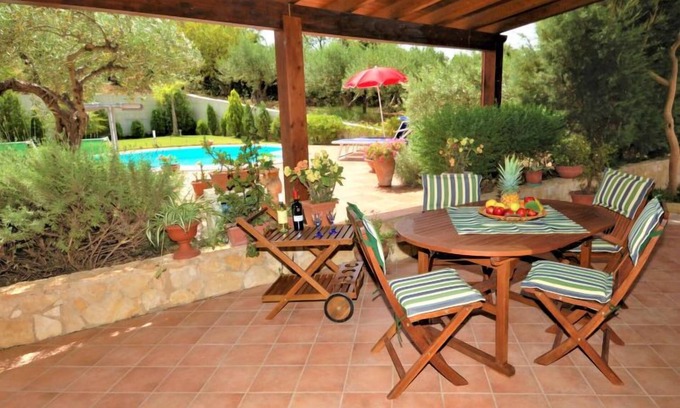 Villa "Rita". 7 km from the centre of Buseto Palizzolo, 15 km from the centre of Trapani, in a quiet, sunny position, 15 km from the sea. Private: property 600 m2 (fenced), garden wildlife garden and trees, swimming pool kidney shaped (5 x 10 m, depth 120 - 220 cm, seasonal availability: 01.Apr. - 31.Oct.). Garden furniture, barbecue, pool maintenance by the owner/gardener. Heating available only from 01.Dec. - 31.Mar.. Parking on the premises. Nearby attractions: Trapani/Aliscafi per Isole Egadi 15 km, Erice 17 km, Segesta Parco Archeologico 26 km, San Vito lo Capo 33 km, Marsala/Saline di Marsala 41 km, Palermo 90 km. Please note: car recommended.