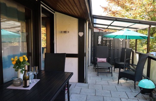 "Scout", 2-room semi-detached house 42 m2. Practical furnishings: living/sleeping room with 1 sofabed and satellite TV. Exit to the terrace. 1 room with 2 sleeping facilities. Open kitchen (4 hot plates, oven, dishwasher, electric coffee machine). Shower/WC. Gas heating. Terrace, garden 300 m2. Terrace furniture, box-room. Facilities: children's high chair, baby cot (extra). Please note: maximum 1 pet/ dog allowed. Smoke alarm, fire extinguisher. The property is one of a type of property or apartment.