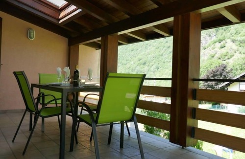 "Terry", 4-room apartment 90 m2 on 1st floor. Spacious and bright, practical and comfortable furnishings: open living room with satellite TV. Exit to the balcony. 1 double bedroom with 1 double bed (1 x 160 cm, length 200 cm), shower/WC. 1 room with 2 beds (90 cm, length 200 cm). 1 room with 1 bed (90 cm, length 200 cm). Kitchen (4 ceramic glass hob hotplates, toaster, kettle, freezer, electric coffee machine, Capsules for coffee machine (Nespresso) extra, raclette grill). Exit to the terrace. Bath/WC. Electric heating. Terrace. Terrace furniture, barbecue (portable), deck chairs (2). Beautiful view of the mountains and the countryside. Facilities: children's high chair, baby cot for up to 2 year olds (extra), hair dryer. Internet (WiFi, free). Please note: non-smokers only. Maximum 1 pet/ dog allowed. NL-00006981