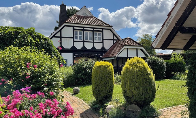Vacation home with garden on the Weser cycle path near the Pied Piper town of Hameln is located in Hamelin. Vacation home with garden on the Weser cycle path near the Pied Piper town of Hameln provides accommodation, featuring Parking, TV, Bedding/Linens, among other amenities. This House features Parking, TV, Bedding/Linens, to make your stay a comfortable one.