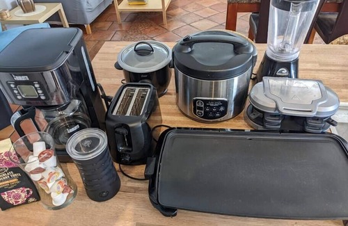 Bathrooms are newly updated with plenty of towels and toiletries provided (extra toothbrushes, hair products, shampoo, body wash, and more for your use). Fully stocked kitchen with: dishes and utensils, pots and pans, Air Fryer, teapot, dishwasher, microwave, Bialetti coffee maker, rice maker, blender, pancake griddle, butter, oil and spices. Anything in the pantry & fridge is available to you.