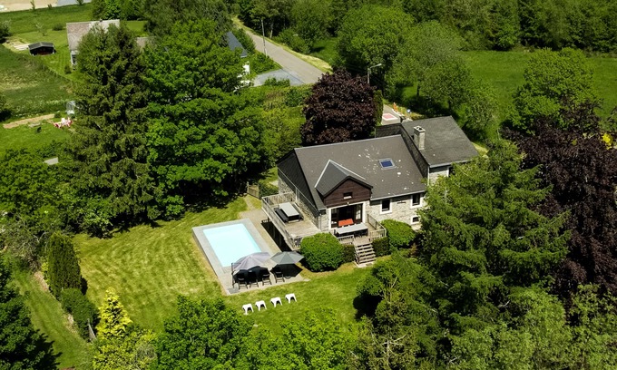 Beautiful country house for 12 to 21 people located in Langlire (Gouvy), in a beautiful area of the Ardennes. This region, of the eastern Ourthe with its unique valleys, is known for its great forests. It is an ideal base for hikers, cyclists, cross-country skiers and anyone who can enjoy peace in a beautiful nature. From the garden you have a beautiful view over the woods and the relaxing nature. This large garden has several sun terraces, a garden house, and plenty of space so that children can enjoy themselves undisturbed. The country house has all the necessary luxury. After a day outside, you can enjoy the sauna or soak in the beautifully heated outdoor swimming pool (from May to September). Or how about a game of Pool Billiards or table tennis during the aperitif or after dinner?