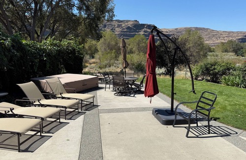 Beautiful 3 bedroom 3 bath home located on flat, sunny lot close to the shores of the Columbia River. This amazing home will sleep 8 - 10 people comfortably. This home features a huge back yard with hot tub and outdoor grill. There is a large bonus/rec room with queen bed and extra mattresses. The kitchen is absolutely wonderful loaded with every amenity. This property has direct access to the Columbia River for every water activity imaginable. This home is less than 10 minutes from the Gorge Amphitheater. Great property for an extended vacation or a long concert weekend.