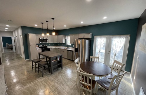 Vacation paradise on Rathbun lake! 4BR, 3BA with large game room with extra sleeper sofa for the 4th bedroom, Large living room & Kitchen, all one level with laundry facilities. Huge yard to setup games or just enjoy running around. Has a large outdoor fire pit area to enjoy on a relaxing evening. Has a beautiful inground swimming pool off the back patio for those hot summer days and BBQ area. Its approximately 3/4 of a mile from the closest boat ramp or about 10 minute walk to water access. The lake is visible from the property. It also has a camper spot for those that have larger families and need the extra room! This space includes water and electricity and sewer all for only $50 per night added. Vacation paradise on Rathbun lake! This property has open floor plan for large family gathering. Sleeps up to 14 people. Great location for lake access.