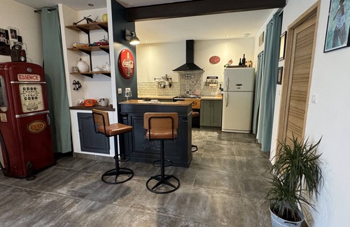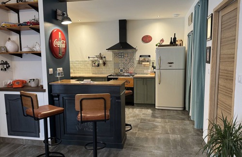The interior of this villa with a private pool in Maubec is carefully decorated. The rental is on one level. It has a living area of 83 m². Spacious air-conditioned living room, arranged with several living spaces: Kitchen opening onto the dining area, equipped with a 5-burner gas hob, microwave, oven, dishwasher, toaster, Senseo coffee maker and fridge, washing machine and tumble dryer. Dining room with a table that can accommodate 6 guests. Living room with TV (DTT - satellite channels), WIFI internet and fireplace. 2 bedrooms: 1 bedroom with a double bed 140 and a study area. 1 bedroom with a double bed 160. 1 bathroom with bathtub, a sink, a toilet and hair dryer.