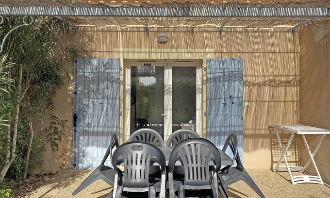 Stay in the heart of the Alpilles in this comfortable cottage for 4 to 6 people, located in a holiday residence with a heated shared swimming pool, in Mouriès, in the Bouches-du-Rhône department.At only 500 m from the village centre and shops, you enjoy a natural, peaceful and authentic living environment, at the foot of the olive groves and hiking trails of Provence.Situation EnvironmentThe village of Mouriès is famous for its olive oil production and offers direct access to numerous nature activities:Hiking on foot, by bicycle or on horsebackGolf within 2 kmPublic tennis and equestrian centre accessible on footDiscovery of Provençal villages: Maussane-les-Alpilles, Saint-Rémy-de-Provence, Les Baux-de-Provence, Aureille, etc.Nearby cities:Arles: 27 kmAvignon: 35 kmCamargue: 50 kmEXTERIORThe cottage is part of a calm and flowery residence composed of 80 terraced houses, in a typical spirit of a small Provençal village.Common facilities of the residence:Heated collective swimming pool (16 m x 8 m depth 1.10 m to 1.60 m)→ Secured by approved barriers→ Access by steps→ In service from April to end of September (weather permitting)Private parkingSecure gate with digital codePétanque areaBicycle rentalLaundry area (with additional charge)Exterior of the cottage:Private garden with terrace and pergola (not enclosed)INTERIORThis cottage in Mouriès offers a living area of 53 m² on 2 levels, functional and pleasant to live in.Ground floor:Air-conditioned living room:→ Kitchen area with fridge, microwave, oven, kettle, 2-burner ceramic hob, dishwasher, filter coffee maker→ Dining area→ Living room with 2-seater sofa bed, television (local channels)Room 1: double bed 140Bathroom: shower cubicle, washbasin, toilet, washing machine1st floor:Room 2: two single beds 90Bathroom: shower, washbasin, toiletPractical InformationMaximum capacity: 4 to 6 peopleFree Wi-Fi connectionBaby bed high chair available on request (at no extra charge)Pets allowed on request: £35/animalElectricity charged according to consumption (all year round)Household linen not included rental possible at £15/person (sheets, towels, tablecloths, tea towels)End of stay cleaning: £80Deposit: £300Tourist tax: according to the current rateThe advantages of the rentalHeated secure swimming poolQuiet residence 500 m from shopsTypical Provençal atmosphereNumerous activities nearbyEco-friendly actionsSelective sorting implemented in the rentalSupport for the residence's ecological initiativesAccessibility Partially adapted for people with reduced mobility:→ Ground floor bedroom, walk-in shower with grab bar→ Toilet also equipped