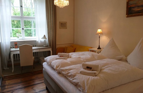 The Wasserburg has individually and lovingly furnished guest rooms (single, double and family rooms) for up to 20 - 25 people. In the park or on the orchard you can also relax in the summer. Campfires under a breathtaking starry sky, the songbird concert in the morning, chickens, horses, the large vegetable garden, the historic buildings and the small bell tower in the courtyard give the property a lively and special atmosphere. The historic ballroom, the blue chapel and the rustic granary offer plenty of space. For example family reunions, group excursions, company meetings or weddings and events.