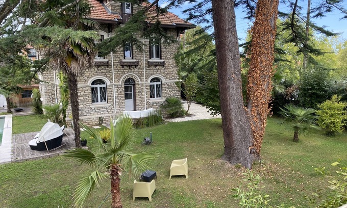 In Bayonne, in a quiet area and close to the city center, beautiful old house with large garden and heated pool. The beaches of Anglet are 7 Kms and Biarritz are 10 minutes. The center of Bayonne is within walking distance. Comfortable house completely renovated in 2012 with a beautiful decoration.