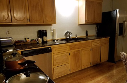 Quite ,Cute ,Clean and Cozy studio guest house . This unit sleeps 4 it has a plush Full/Queen size bed and comfortable bunk beds. Extra Large shower, full Kitchen with dishes pots and utensils. , Oven microwave. You have privacy on the deck with a large in ground pool,with waterfall. The pool is shared with one other guess unit on the deck. This separate from the main house. Soak up the sun on the deck .while having access to the BBQ Grill. This property has the county fell while minutes away from the beach. So you get the best of both experiences in one trip.