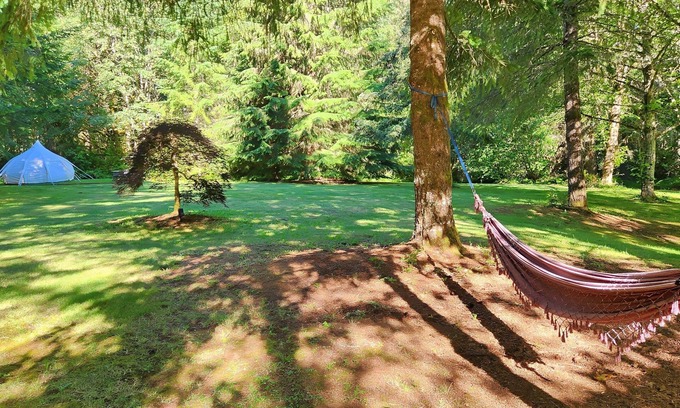Versatile Sleeping Arrangements: The property comfortably sleeps 11 to 13 guests in the main house, plus additional accommodations through a Lotus Belle Tent and tent camping options for larger groups, making it ideal for family gatherings and wedding parties.