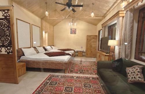 Vacay Datcha 3 bedroom and attic bedroom in Kūd provides accommodations with a garden and a shared lounge. Guests can make use of the sun terrace or the outdoor fireplace, or enjoy views of the garden and inner courtyard. Every room includes a kettle, a private bathroom, and free Wifi, while selected rooms come with a balcony and some have mountain views. At the vacation home, every unit includes air conditioning and a flat-screen TV. Buffet and à la carte breakfast options with warm dishes, local specialities, and cheese are available. Jammu Airport is 64 miles away.