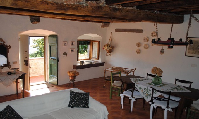 Old farmhouse in the countryside, but only 600mt.away from the village, located on one floor, independent, adjoining the owner's house .